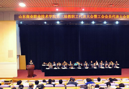 第三屆教職工代表大會暨工會會員代表大會第四次會議于3月26日至31日在學術報告廳舉行,共有正式代表149人、特邀代表25人、列席代表21人參加。會議聽取并審議了學校院長錢乃余所作的《學校工作報告》、審議了《2014年預算執(zhí)行情況和2015年預算草案報告》和《山東商業(yè)職業(yè)技術學院教職工代表大會實施細則》,形成如下決議: