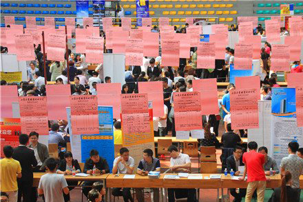 由于多數(shù)學生已經(jīng)就業(yè),商職院的招聘會場面并不火爆