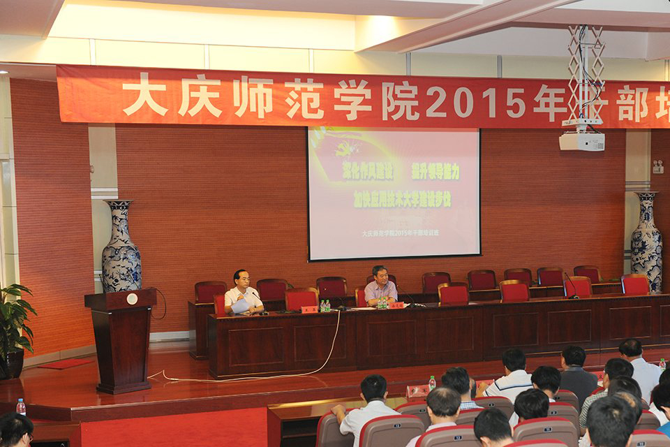為提升干部領(lǐng)導(dǎo)能力和管理水平,培養(yǎng)一支精干高效的干部隊(duì)伍,加快學(xué)校應(yīng)用技術(shù)大學(xué)建設(shè)步伐,9月4日,學(xué)校黨委在博雅講堂舉辦了2015年干部培訓(xùn)班,進(jìn)行了第一階段培訓(xùn)暨“三嚴(yán)三實(shí)”專題教育第二專題學(xué)習(xí)研討,學(xué)校副科級(jí)以上干部、部分崗位管理干部、基層黨組織書記和第二期青年干部特訓(xùn)營學(xué)員210余人參加培訓(xùn)。